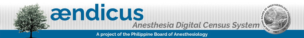 All information in the AENDICUS shall be solely used to achieve its legitimate purpose which is to evaluate trainees, and training institutions as well as to benchmark the practice of Anesthesiology in the Philippines without disclosing any form of identifiers of both patients and trainees. This information is not be divulged to other persons or entities which are not parties to its non-disclosure agreement.